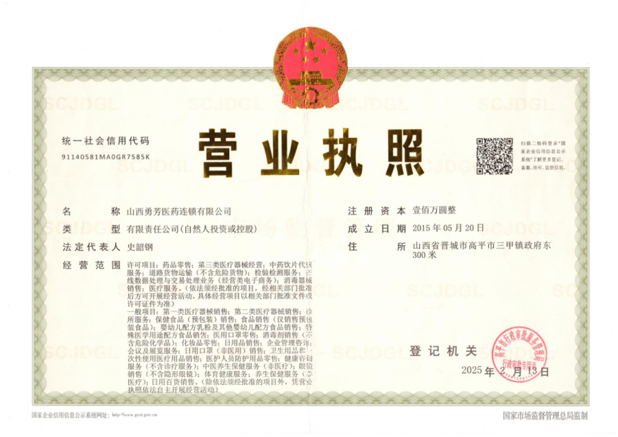 山西省高平市三甲鎮(zhèn)政府東300米山西勇芳醫(yī)藥連鎖公司